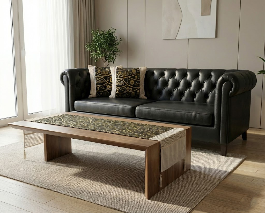 - لمسة ديكورية فاخرة تُبرز جمال الطاولة والكنبة.