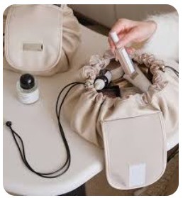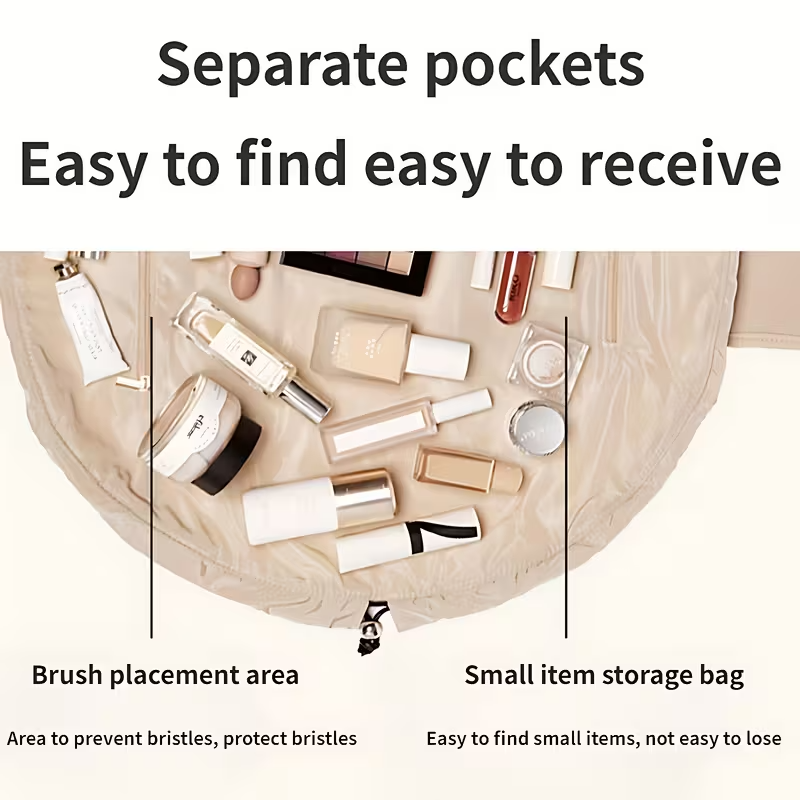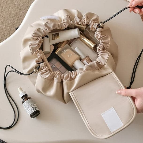 خلي مكياجك منظم وسهل توصلي له في ثواني.. مع شنطة المكياج المحمولة باللون البيج الأنيق ✨👌