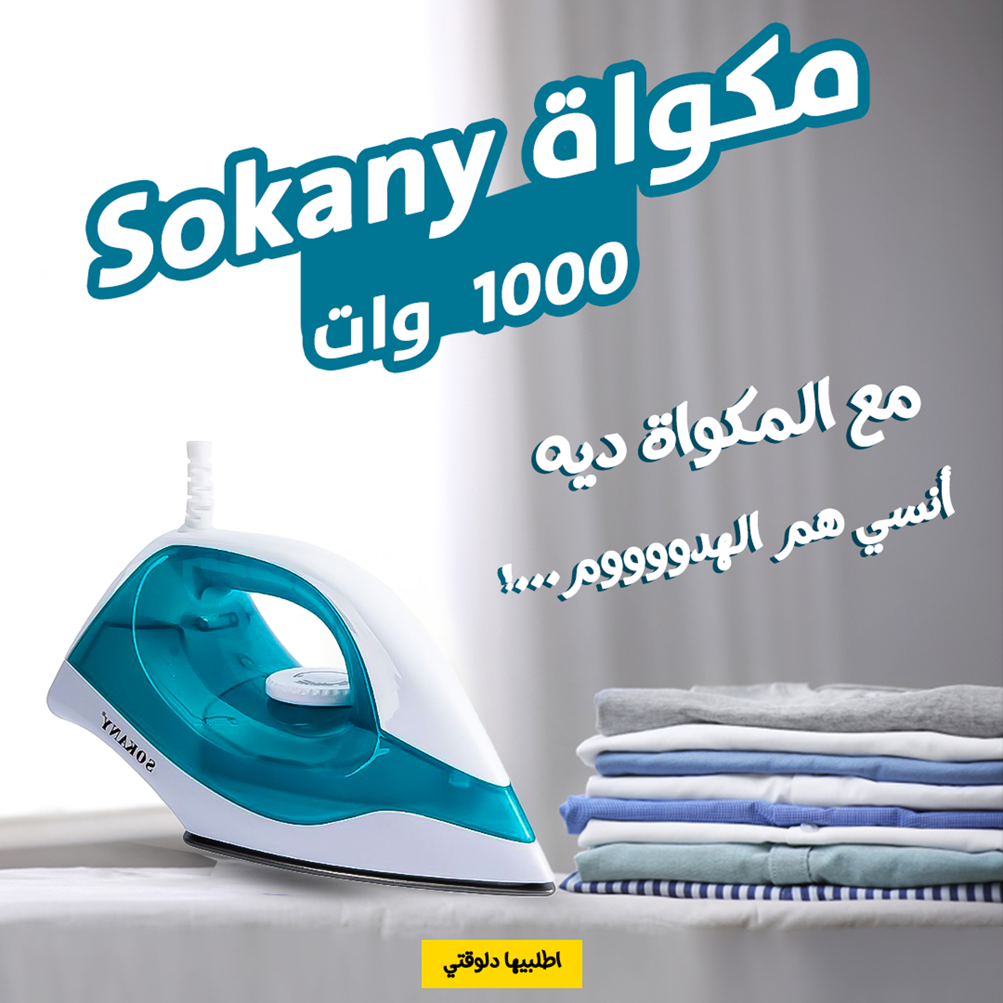 – “عرض الـ2 🔥: مكواة Sokany 1000 وات 💨✨ مع ترابيزة المكواة المحمولة الترند 👗🧺، عشان كوي أسرع وأسهل في أي مكان! 🏠💪”